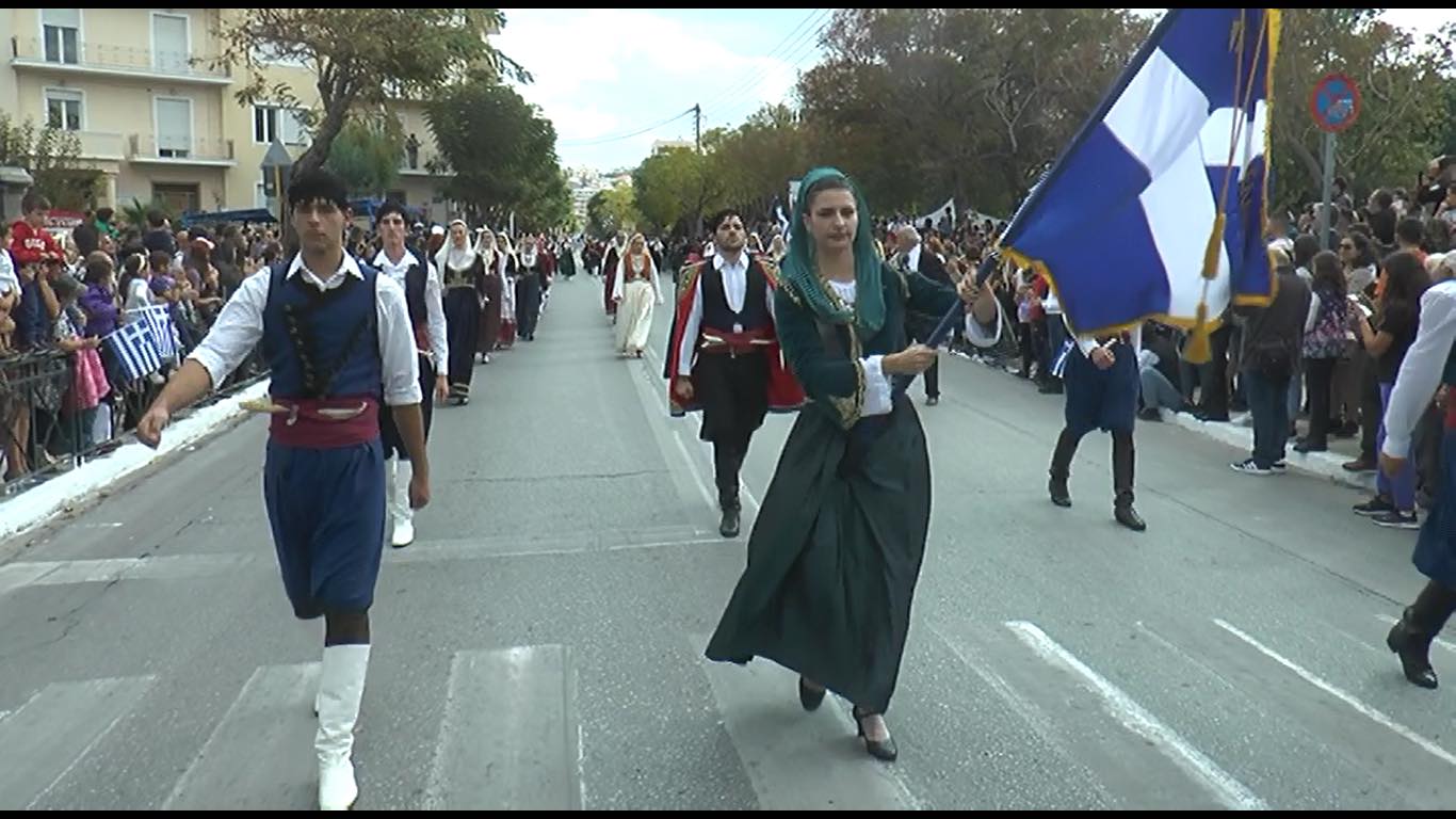 Με ιδανικές καιρικές συνθήκες, τα Χανιά τίμησαν την Εθνική Επέτειο της 28ης Οκτωβρίου 1940 με τις εκδηλώσεις να κορυφώνονται με την καθιερωμένη παρέλαση. Το ενδιαφέρον φέτος τράβηξε η σημαιοφόρος του Λυκείου Ελληνίδων Χανιών. Σε μια εποχή που η γυναίκα χρειάζεται να ορθώσει το ανάστημα της και να διεκδικήσει την θέση που της αξίζει στην κοινωνία, το Λύκειο Ελληνίδων Χανίων, με τον χοροδιδάσκαλο Γιάννη Αγιασμενάκη, επέλεξαν φέτος για σημαιοφόρο μια γυναίκα πλαισιωμένη από βρακοφόρους. Η πανέμορφη κρητικοπούλα κρατώντας ψηλά την ελληνική σημαία παρέλασε με χαμόγελο, αισιοδοξία και υπερηφάνεια θυμίζοντας σε όλους παλαιότερες εποχές του Λυκείου Ελληνίδων Χανίων.