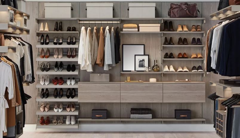 Οι ντουλάπες διαθέτουν χαρακτηριστικά όπως θήκες κοσμημάτων που ξεκλειδώνουν με δακτυλικό αποτύπωμα, περιστρεφόμενα ράφια παπουτσιών, εντοιχισμένα κουρδιστήρια ρολογιών. Oι σχεδιαστές δημιουργούν ειδικά σχεδιασμένες προθήκες για τα σπάνια ή εκκεντρικά αξεσουάρ των πελατών τους – όπως ένα ζευγάρι Chanel πατίνια! Πολυέλαιοι, έργα τέχνης, χαλιά με λεοπάρ σχέδια, χερούλια από δέρμα ή κέρατο – η διακόσμηση δεν χρειάζεται να ταιριάζει με το υπόλοιπο σπίτι καθώς το walk-in closet δεν είναι κοινόχρηστος χώρος.