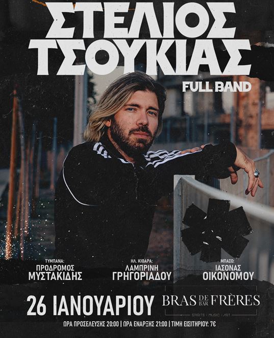 Την Κυριακή 26 Ιανουαρίου, ο Στέλιος Τσουκιάς έρχεται για πρώτη φορά στο Bras De Freres Bar στα Χανιά, για ένα εκρηκτικό full band live, κομμάτι της πρώτης του περιοδείας στην Κρήτη. Έχοντας σταθερά δίπλα του τρεις ξεχωριστούς μουσικούς, τη Λαμπρινή Γρηγοριάδου (100οC, Σούπερ Στέρεο) στην ηλεκτρική κιθάρα, τον Ιάσονα Οικονόμου (Σούπερ Στέρεο) στο ηλεκτρικό μπάσο, τον Πρόδρομο Μυστακίδη (BAiLDSA) στα τύμπανα και pads, παρουσιάζει ένα πρόγραμμα εντελώς καινούργιο, με χαρακτηριστικό ήχο και ταυτότητα. Πιο ηλεκτρικό και πιο δυναμικό που έχει ως στόχο να μας ξεσηκώσει και να μας κάνει να τραγουδάμε μαζί τους χωρίς ανάσα.