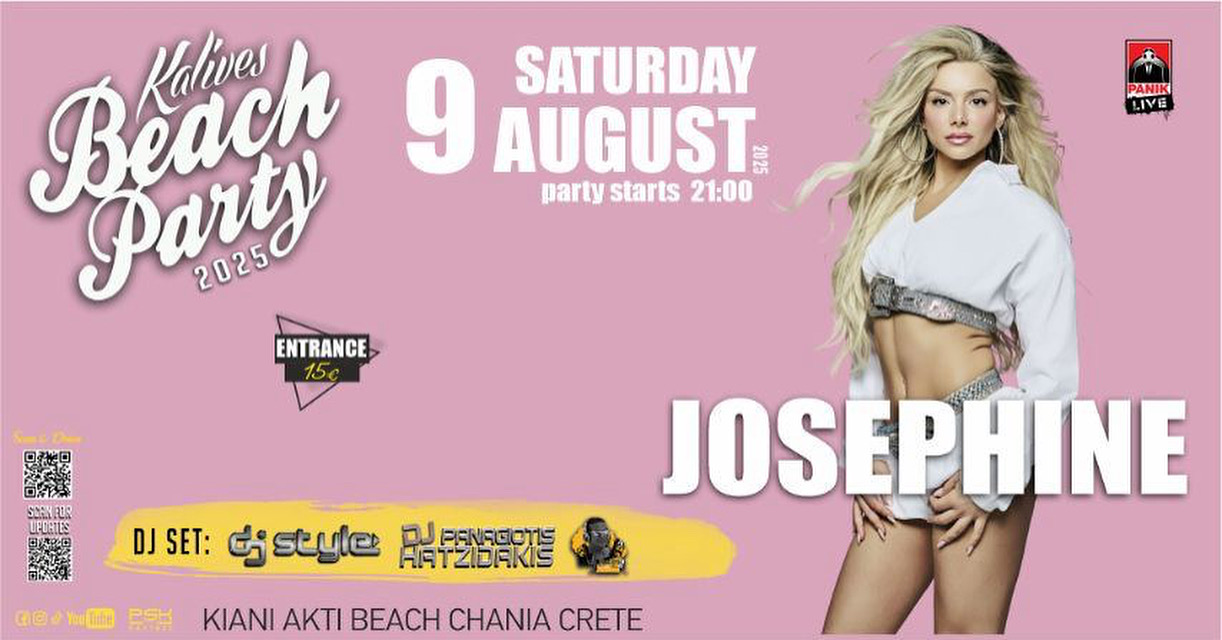 Μέσα σε ένα σκηνικό γεμάτο καλοκαιρινή μαγεία – κάτω απ’ τα αστέρια και με φόντο το κύμα – η σκηνή θα πάρει φωτιά από την εκρηκτική JOSEPHINE, που θα δώσει τον παλμό με ένα live γεμάτο ρυθμό, ενέργεια και ξεσηκωτική διάθεση!