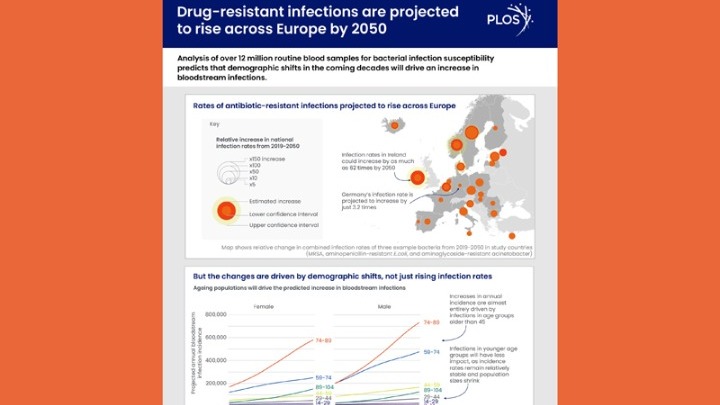 Τα ποσοστά των λοιμώξεων του αίματος που προκαλούνται από ανθεκτικά στα φάρμακα βακτήρια αναμένεται να αυξηθούν σημαντικά σε όλη την Ευρώπη τα επόμενα πέντε χρόνια, κυρίως λόγω της γήρανσης του πληθυσμού, σύμφωνα με μελέτη που δημοσιεύτηκε στο περιοδικό ανοιχτής πρόσβασης «PLOS Medicine».
