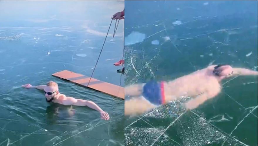 Το βίντεο που διαμοιράστηκαν πολλοί χρήστες στα social media δείχνει τον αθλητή να προσπαθεί να προσανατολιστεί κάτω από τον πάγο, την ώρα που τα μέλη της ομάδας του προσπαθούν απεγνωσμένα να του υποδείξουν την «έξοδο», χτυπώντας τον πάγο πάνω από το κεφάλι του.