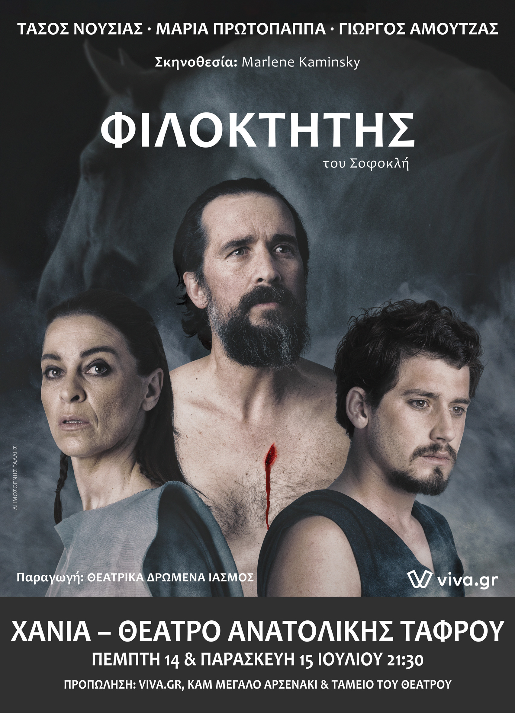 Πρωταγωνιστούν: Τάσος Νούσιας (Φιλοκτήτης), Μαρία Πρωτόπαππα (Οδυσσέας), Γιώργος Αμούτζας (Νεοπτόλεμος)